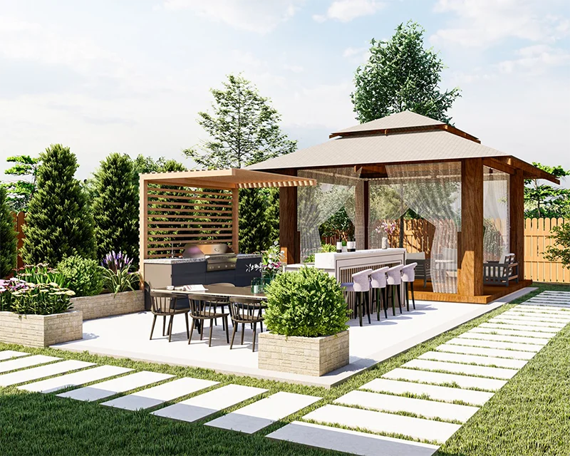 پروژه: طراحی حیاط و نشیمن بیرونی